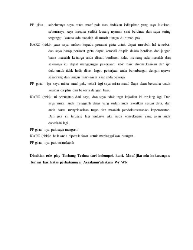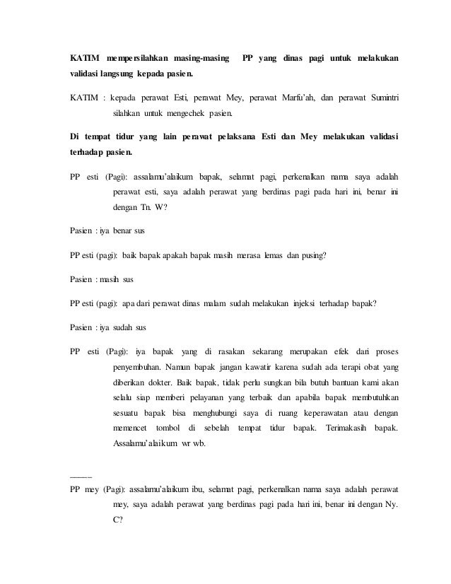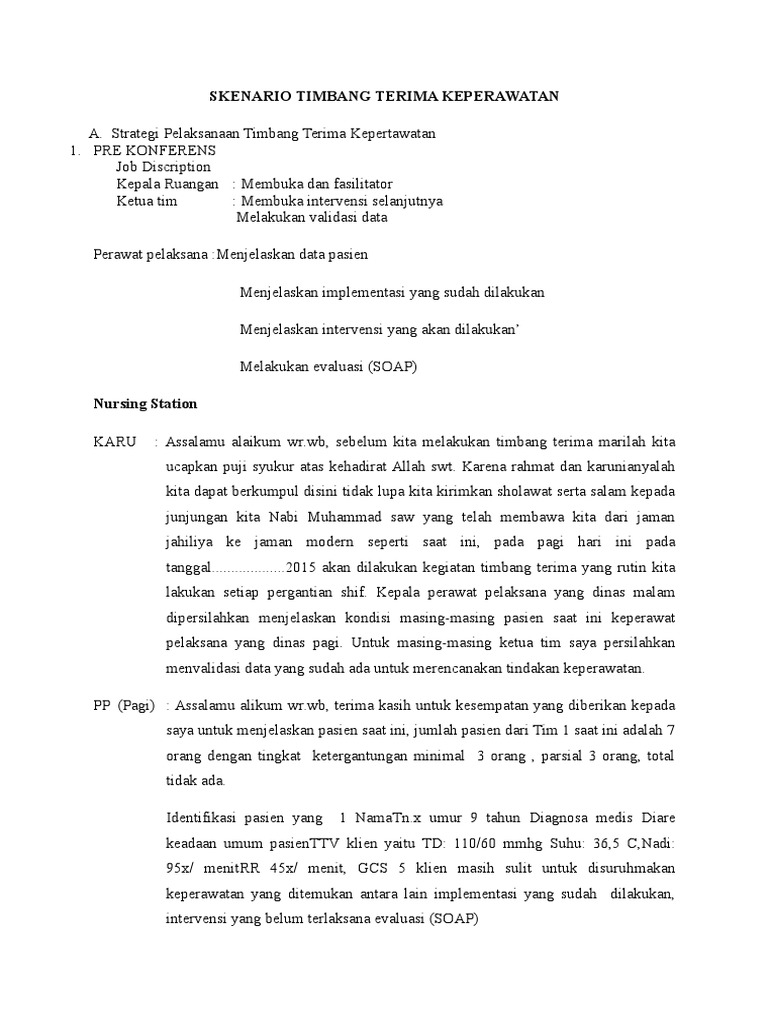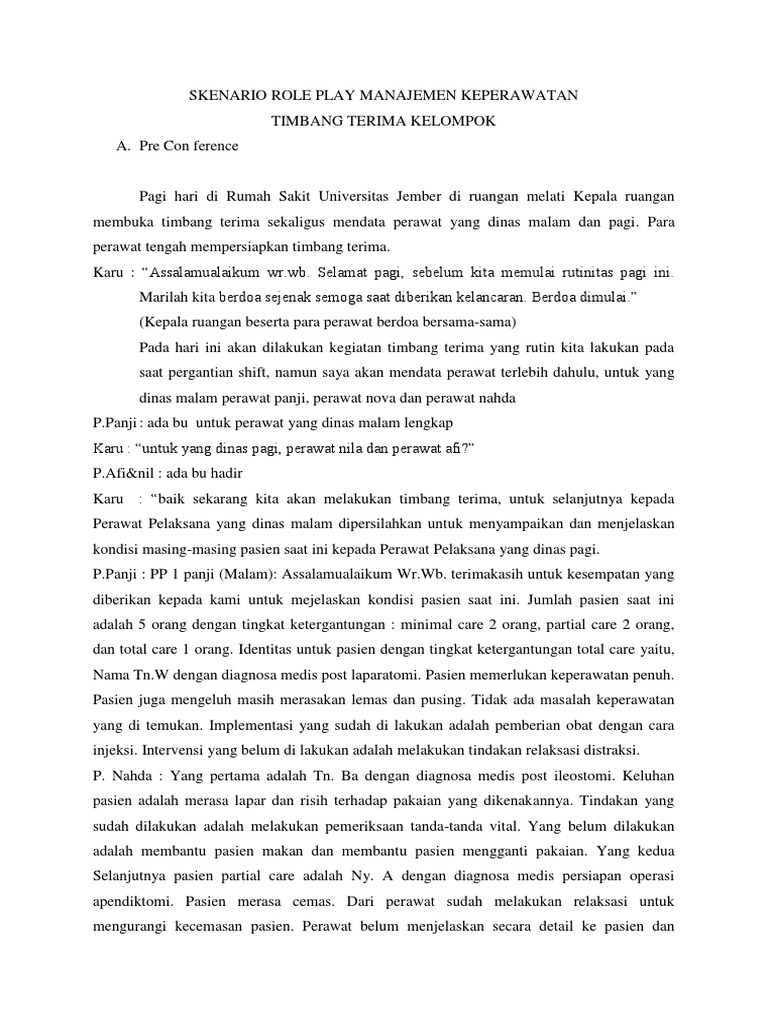 Role Play Timbang Terima Docx Document from static.fdokumen.com Maybe you would like to learn more about one of these? Check spelling or type a new query. Skenario timbang terima manajemen keperawatan. We did not find results for: